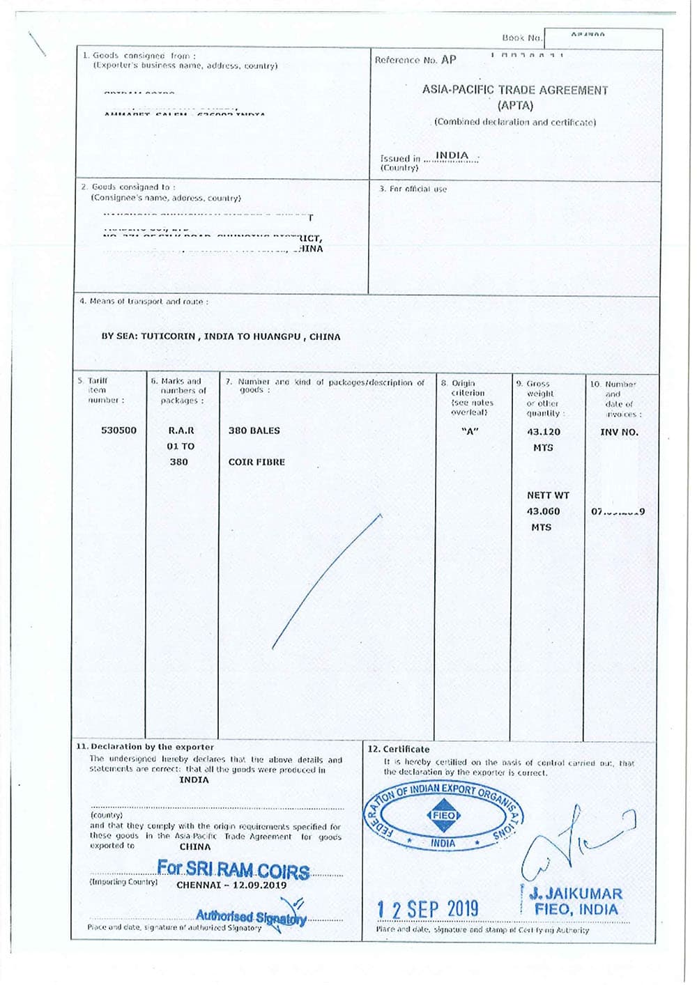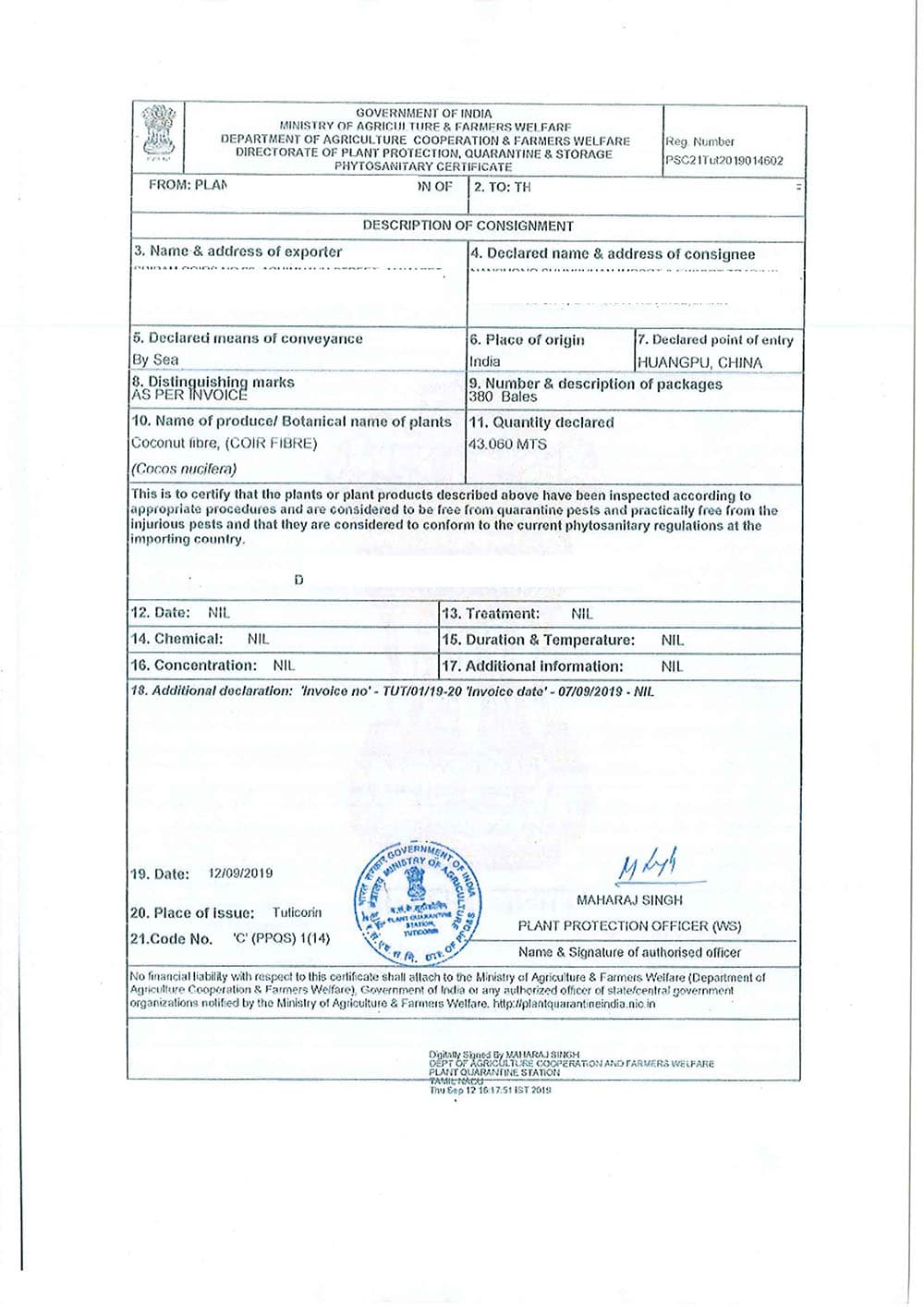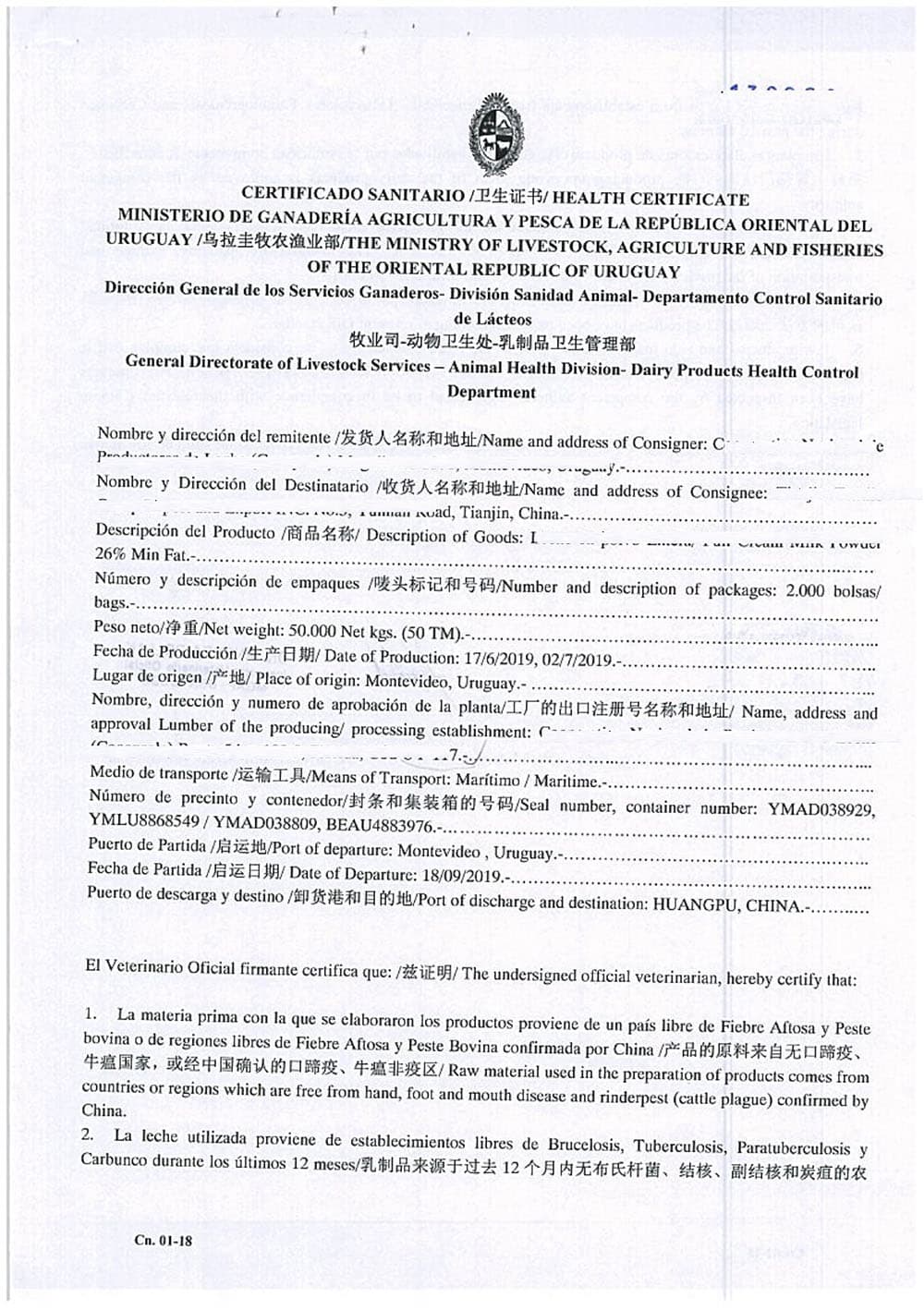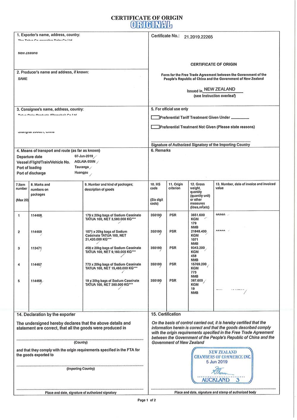 CUSTOMS CERTIFICATE
